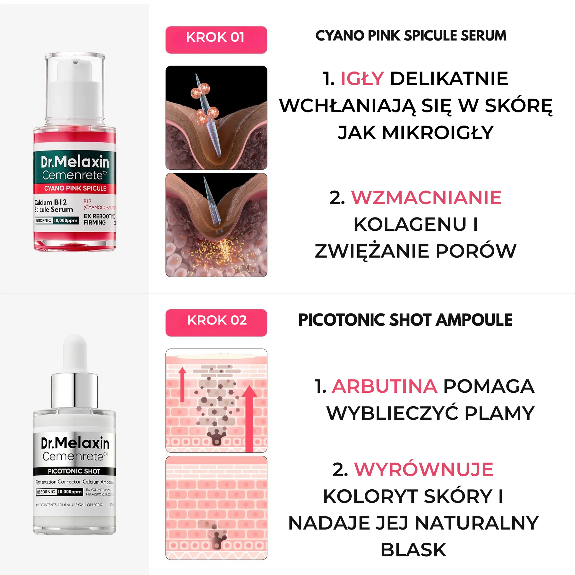 Vermindert poriën en verheldert pigmentvlekken in slechts 2 weken! Deze set bevat het Cyano Pink Spicule Serum en de Picotonic Shot Ampoule. Ideaal voor een stralende glow.