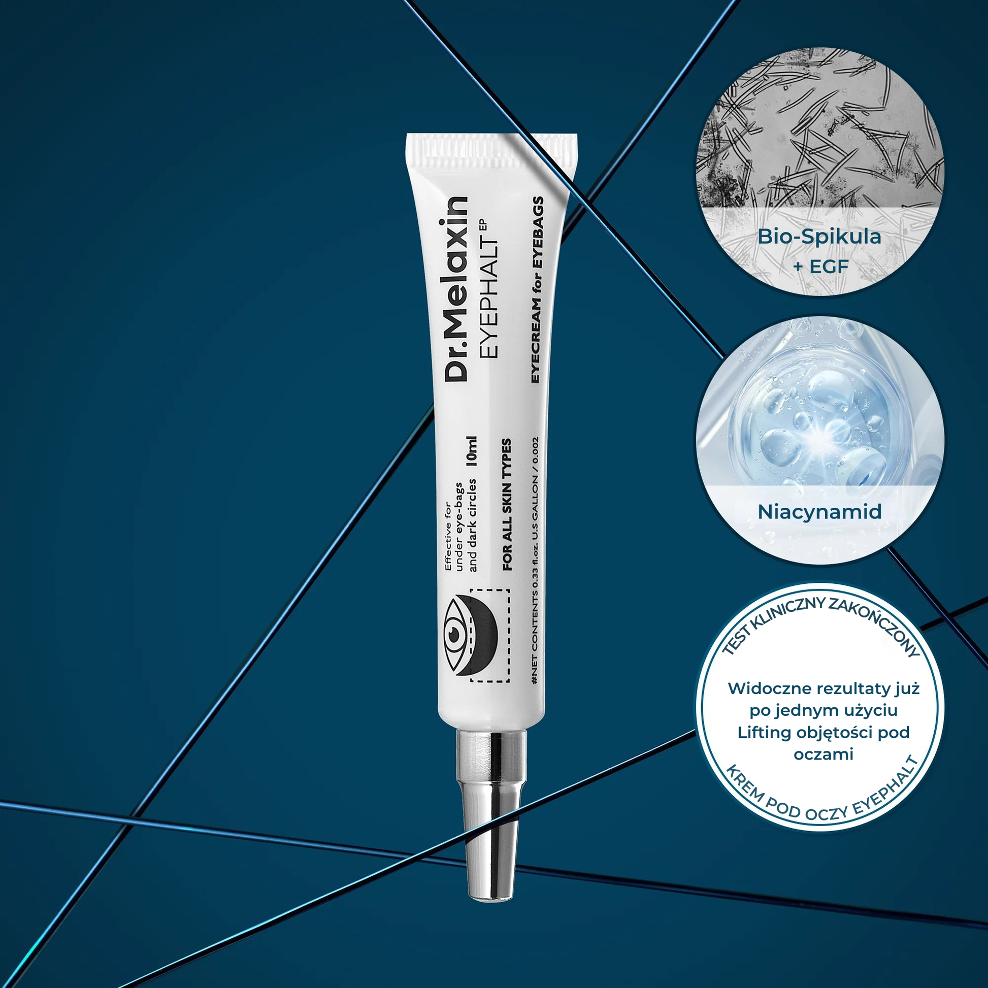Objevte revitalizační vlastnosti očního krému Eyephalt Dr. Melaxin. Tato pokročilá formule, založená na nejmodernější technologii EGF a Bio-Spicule, účinně bojuje proti váčkům pod očima, redukuje tmavé kruhy a posiluje ochrannou bariéru pokožky. Výsledek? Hladší, jasnější a mladistvěji vypadající pokožka pod očima.